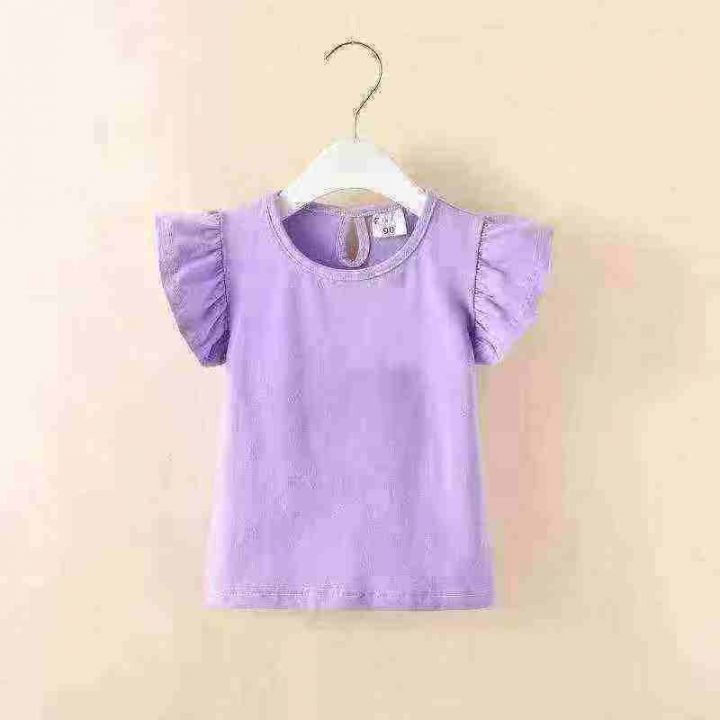 全清4.9韩版夏季儿童装短袖T恤2025女童上衣宝宝无袖甜美纯棉飞飞袖洋气,10...
