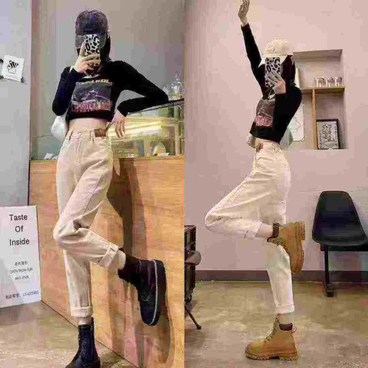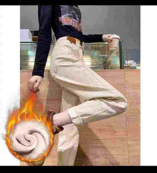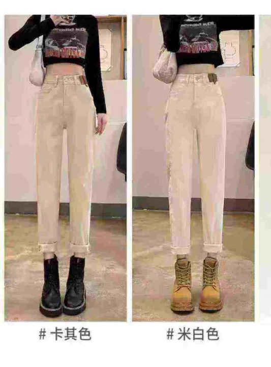 秋冬季宽松休闲老爹哈伦加绒弹力牛仔裤,整款2个颜色...