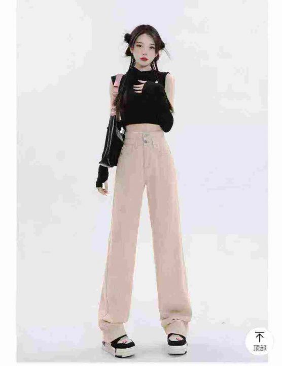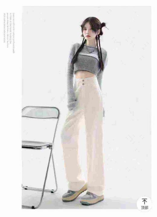 加绒款阔腿高腰宽垂感拖地牛仔裤,整款2个颜色,独立...