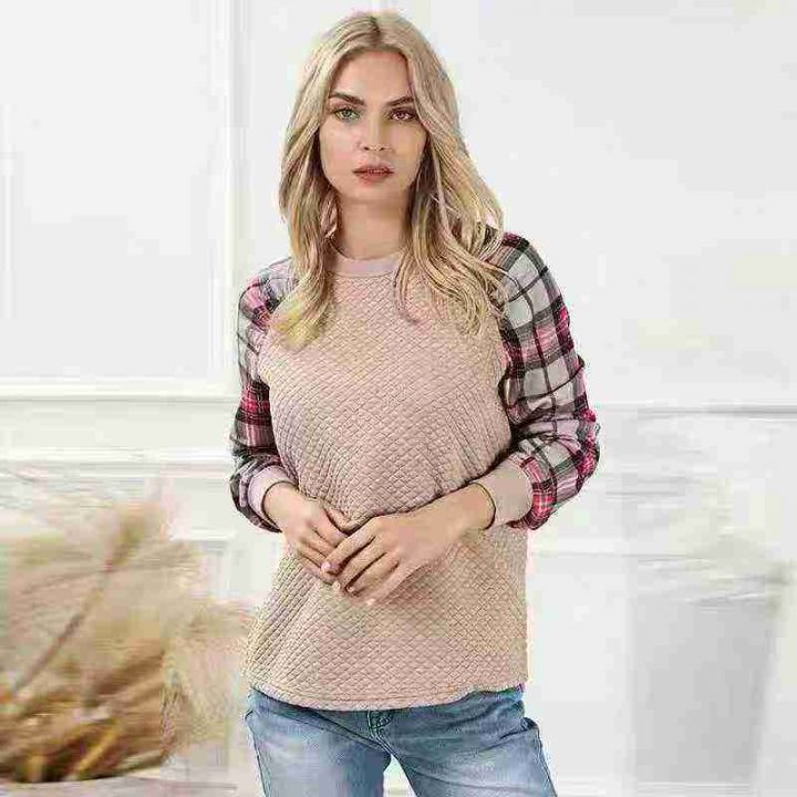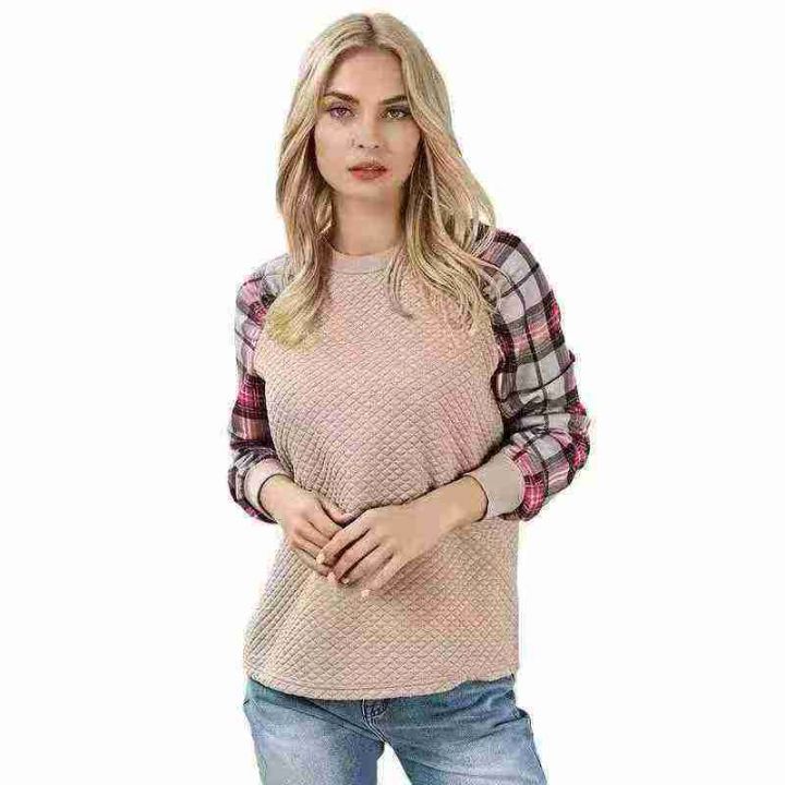 外贸原单格纹插肩袖长袖卫衣,单款单色,独立包装,数...
