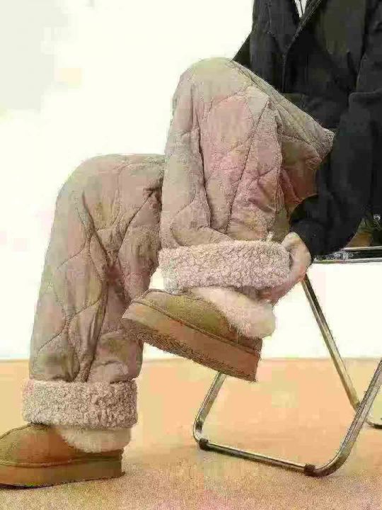 防寒休闲羊羔保暖裤男女冬季潮宽松葫芦纹防水直筒裤加...