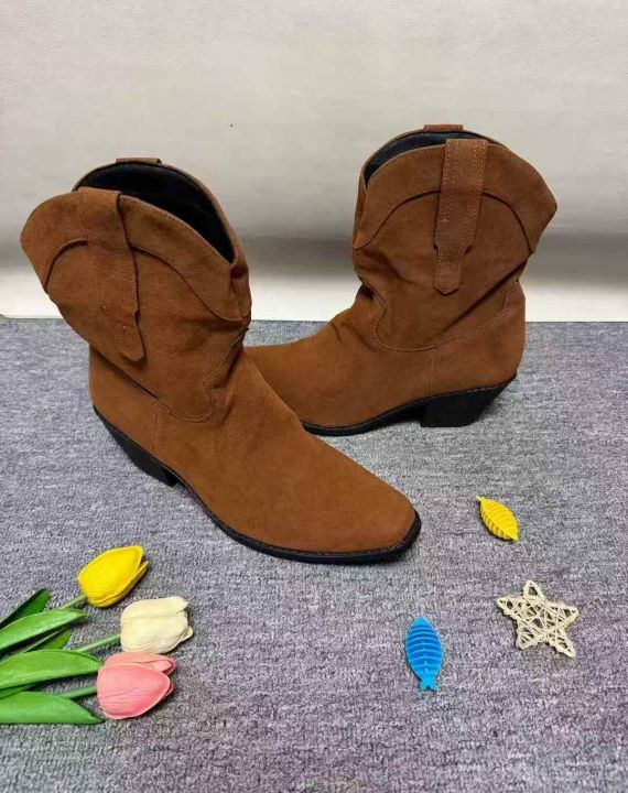 牛皮版~法式尖头西部牛仔靴女2025新款冬季短筒堆堆靴美拉德短靴,数量 80 双,码数 36-43。 图片款,鞋盒包装品质好非常好。全清 16.8