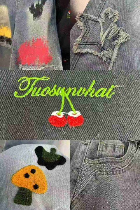 #Jeans wholesale外贸单 高品质重工艺刺绣 烫钻 涂鸦...