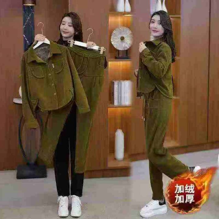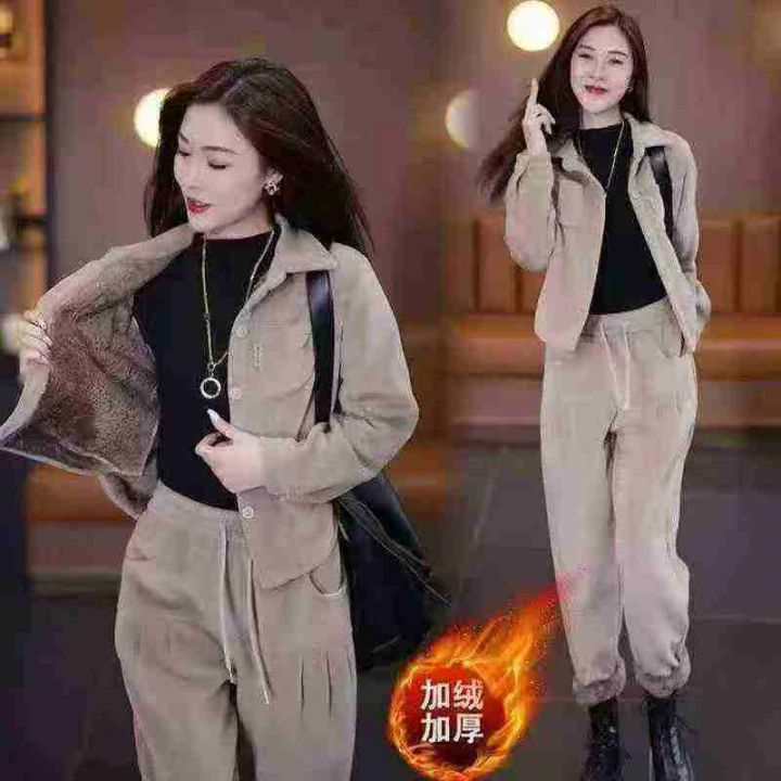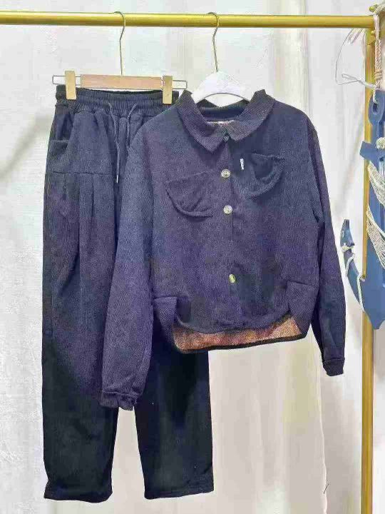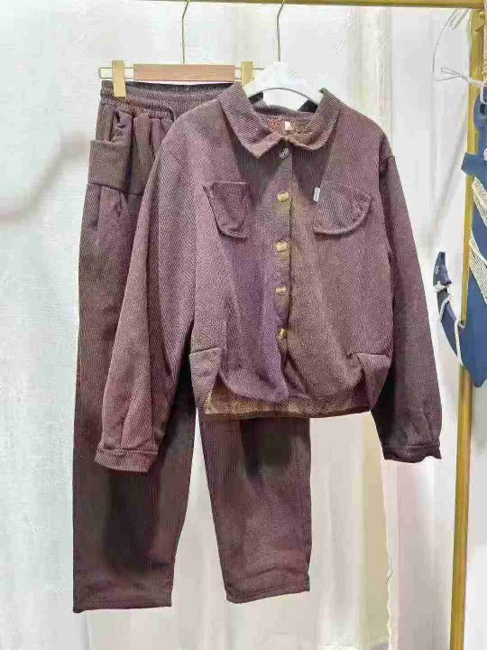 翻领灯芯绒保暖套装女2025冬季加绒加厚宽松显瘦卫衣直筒裤两件套,数量230套,码数mlxl,独立包装,全清17.8元