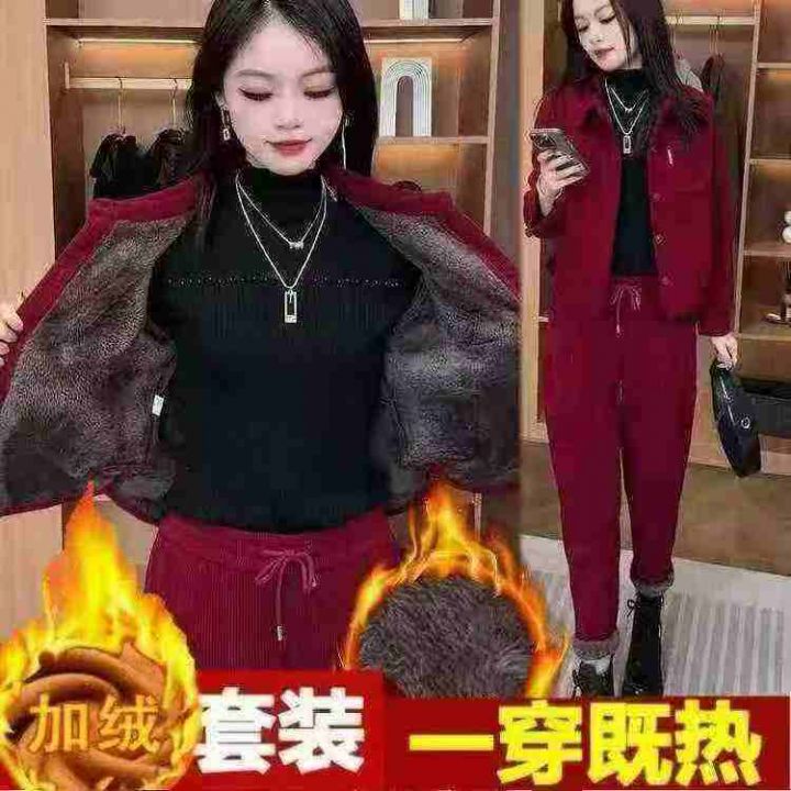 翻领灯芯绒保暖套装女2025冬季加绒加厚宽松显瘦卫衣直...