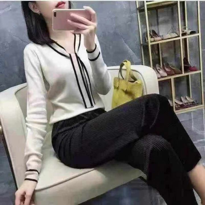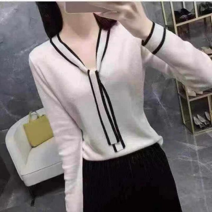 气质且优雅女蝴蝶结系带长袖毛衣时尚新款设计感拼色羊毛打底衫,弹力超大,优雅韩系,穿上气质高雅,版型漂亮,货不多,手慢️