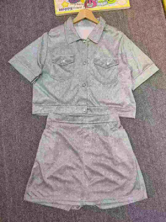 1270套时尚靓妹女装夏季休闲套装裤裙 上衣纽扣解 半松紧腰裤裙有口袋,单款单色 码数2-6码(M-3XL)独立包装。