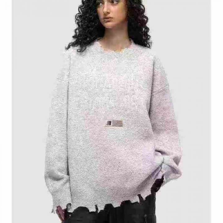 9.9清207件男女同款美式复古学院风,字母图案提花刺绣毛衣,破洞情侣ins针...
