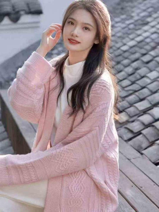 全清13.8,粉色温柔复古麻花早秋装宽松慵懒毛衣针织开衫外套女秋冬宽松上衣,单款单色,均码 50件,不分货