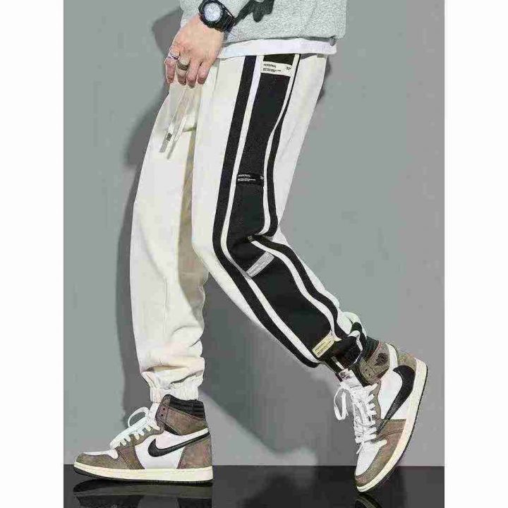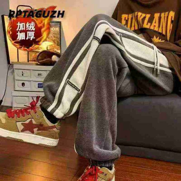 侧边条纹灯芯绒男冬季加绒潮牌宽松束脚裤子,整款三色...