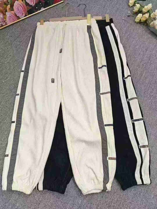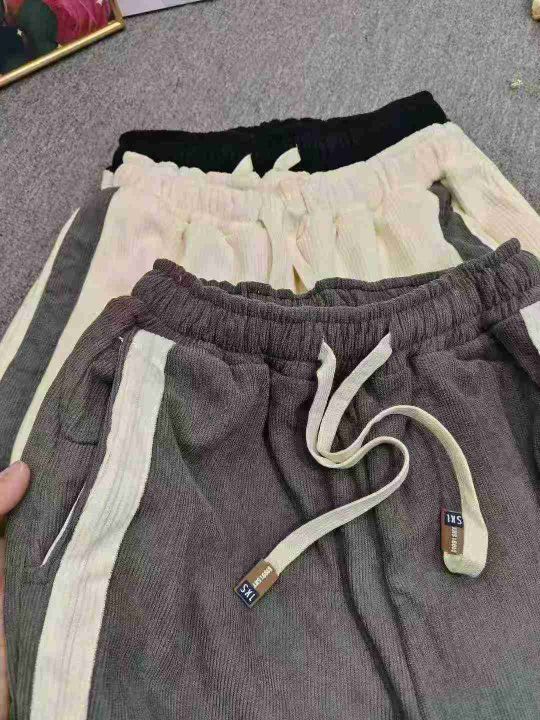 侧边条纹灯芯绒男冬季加绒潮牌宽松束脚裤子,整款三色,独立包装M-3XL,800件左右,10.8清,分+1
