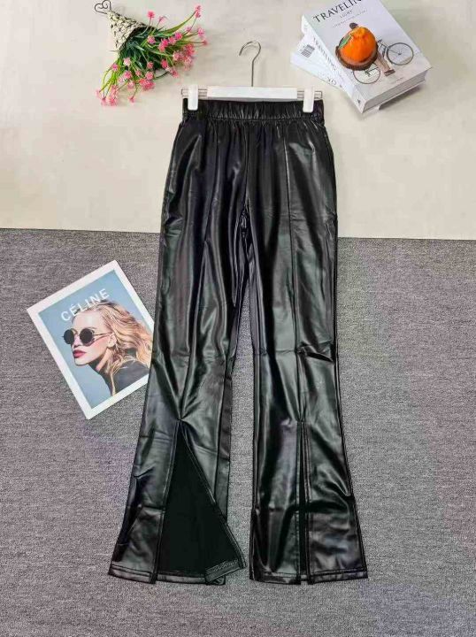 黑色PU辣妹修身小脚喇叭高腰显瘦百搭加绒皮裤,品质好,小整杂,数量:430件左右,码数:XS-2XL,独立拉链包装(模特图仅参考)。