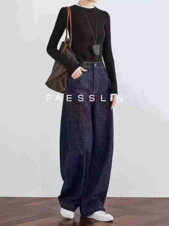 #Jeans wholesale 弯刀牛仔裤女士秋冬半松紧高腰长阔...