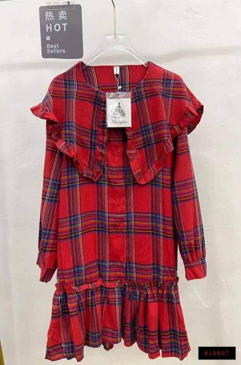复古格子连衣裙121件8.5,翻领荷叶边,褶皱拼接,码标:160/84A(90-120斤...