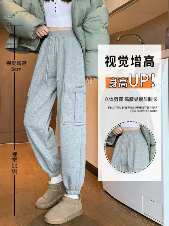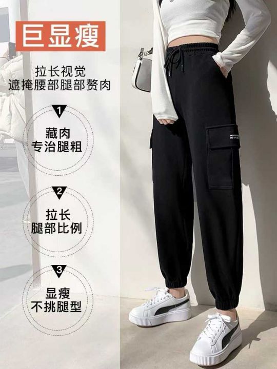 春秋新款工装裤女显瘦高腰黑灰运动裤休闲宽松束脚直筒...