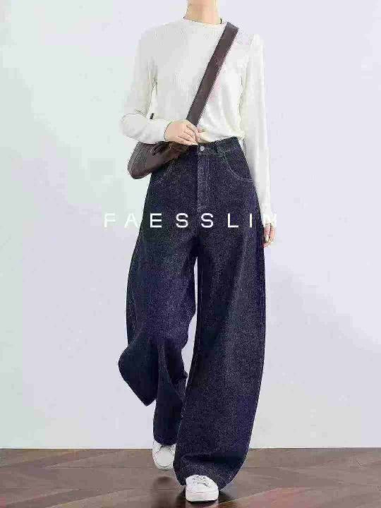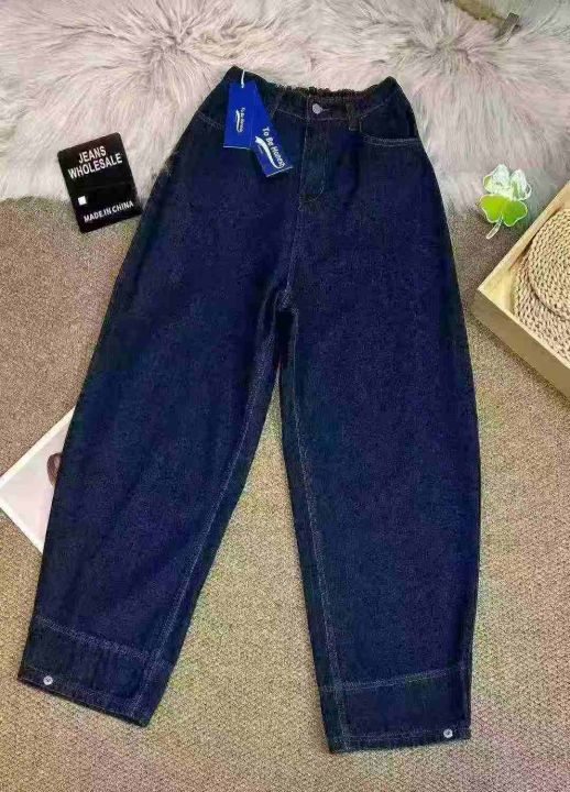 #Jeans wholesale 弯刀牛仔裤女士秋冬半松紧高腰长阔...