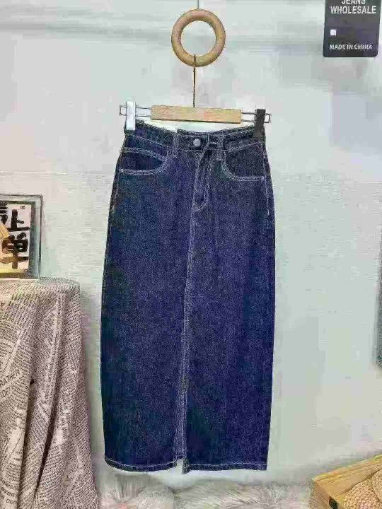高腰显瘦前开叉牛仔中长款半身裙,单款两色,浅蓝色款多,蓝色少量,数量391条,独立包装带腰牌防伪扣,尺码xs-xl码,洗水棉柔软面料,颜色尺码清单请看第7张图,全清12.9分+1
