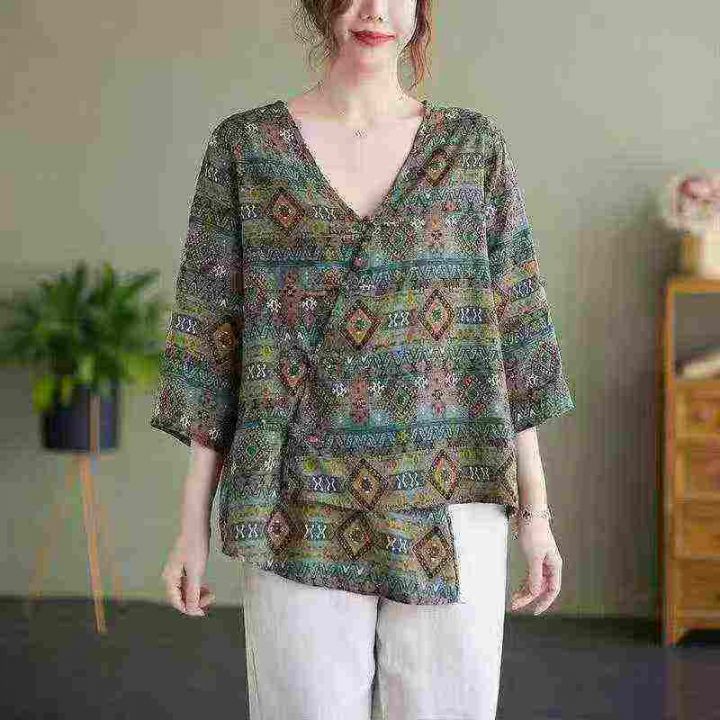 复古新款宽松洋气盘扣T恤大码女装 ,数量:106件,...