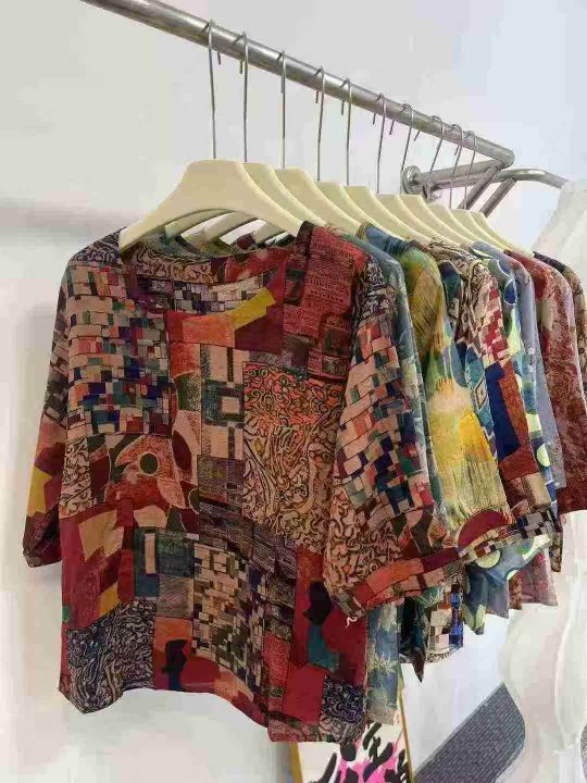 杭派高品质妈妈棉麻系列中袖☕️2800件全清9.9 分货+1 ,均码,80-140斤,小整十几个花型,精品独立包装,夏季宽松五分袖妈妈显瘦上衣棉麻上衣新款民族风短袖T恤。 货号:1303