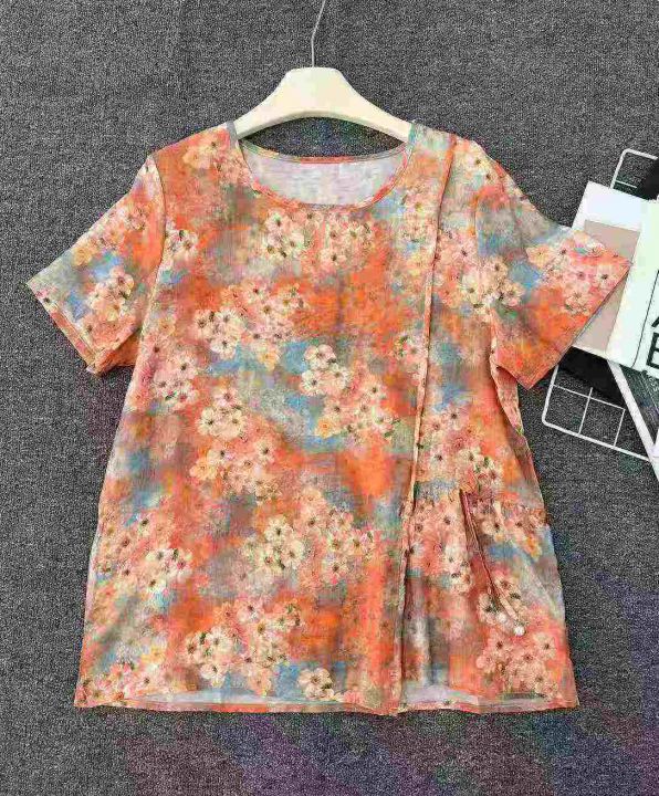 杭派高品质妈妈棉麻系列☕️6500件全清11.8 分货12.8 码数xl到6xl,小整多花型颜色,精品独立包装,棉麻国风妈妈夏季洋气小衫新款短袖上衣服宽松中老年女式时尚t恤。 货号:24862