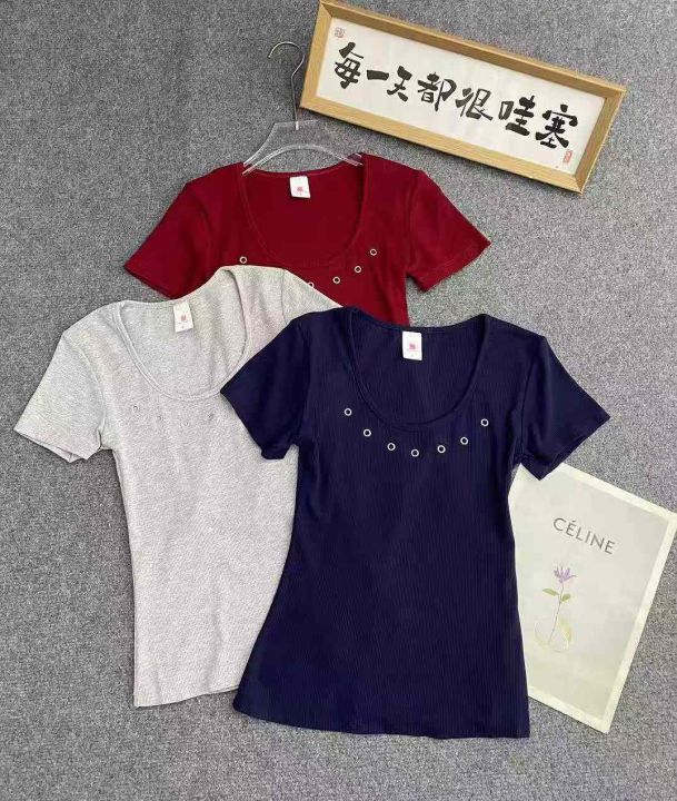 辣妹棉质U领短袖307件6.5,面料柔软高弹力,镂空设计...