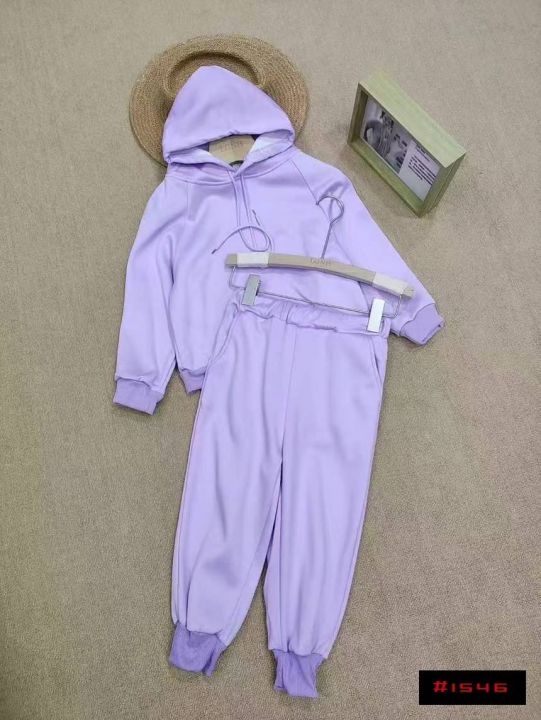 [月亮]:潮童香芋紫加绒连帽休闲套装