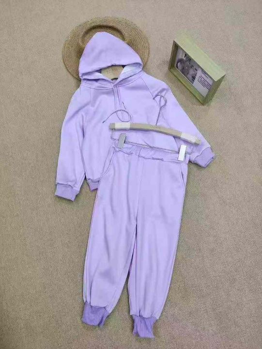 [月亮]:潮童香芋紫加绒连帽休闲套装