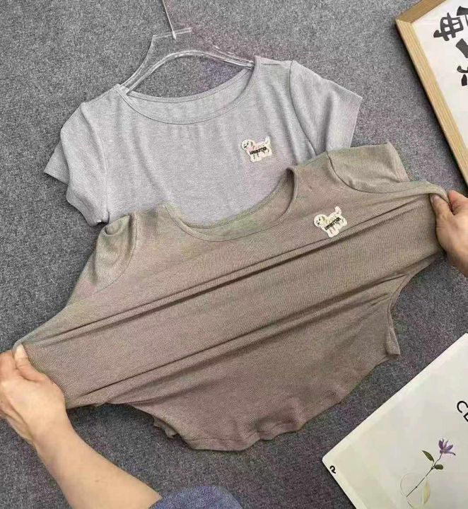 人棉弹力刺绣正肩短袖170件6.9,面料手感柔软舒适,高...