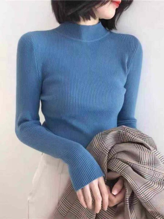 [月亮]:秋冬修身显瘦高弹针织毛衣上衣