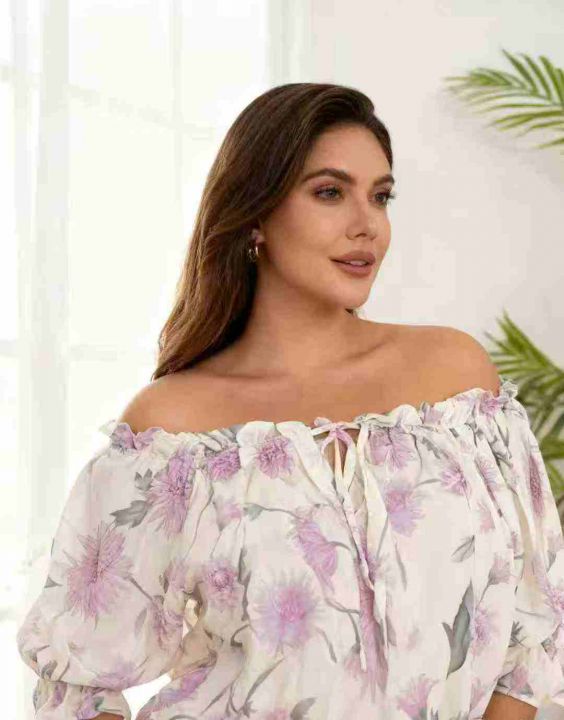 夏季欧美一字上衣泡泡夏季新款印花碎花雪纺衫甜美法式衬衫,独立包装,码数S-5XL,数量233件,全清4.5元