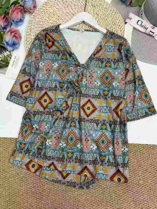 复古新款宽松洋气盘扣T恤大码女装 ,数量:106件,...