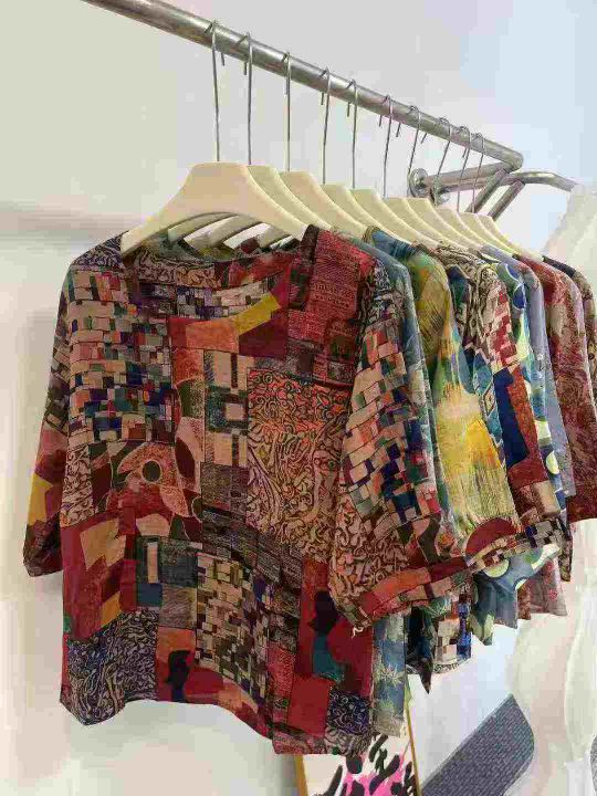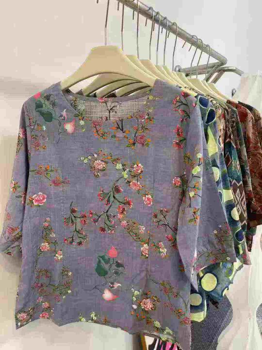 杭派高品质妈妈棉麻系列中袖☕️2800件全清9.9 分货+1 ,均码,80-140斤,小整十几个花型,精品独立包装,夏季宽松五分袖妈妈显瘦上衣棉麻上衣新款民族风短袖T恤