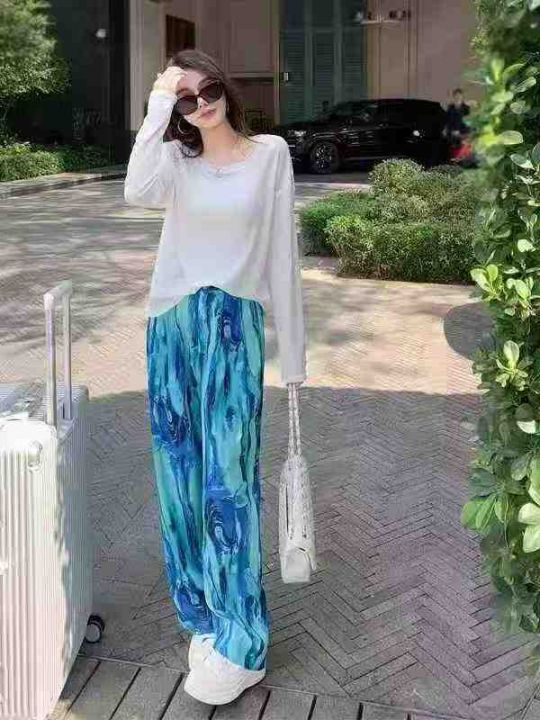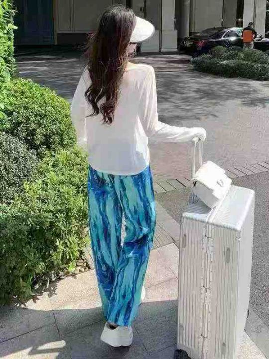[月亮]:多巴胺孔雀蓝扎染靓妹休闲裤