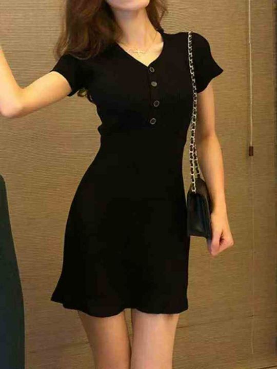 品牌原单法式复古弹力修身显瘦冰丝针织衫小黑裙,独立...