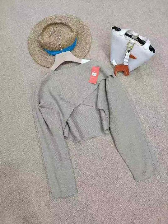 [月亮]:慵懒风辣妹设计感叠穿一字肩短款毛衣