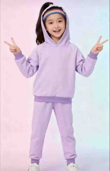 [月亮]:潮童香芋紫加绒连帽休闲套装