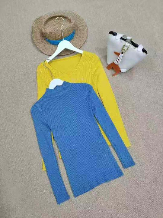 [月亮]:秋冬修身显瘦高弹针织毛衣上衣