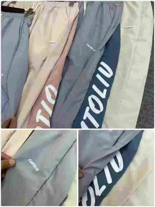 523条,港风休闲裤女2025夏季新款宽松阔腿裤薄款抽绳束脚拼接学生运动裤,独立包装,码数S-3XL,全清7.8元,分货➕0.5。 货号:1323