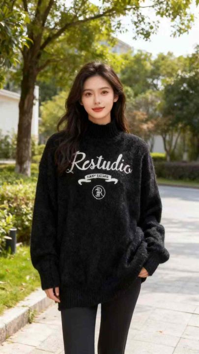 秋冬新款高品质女装宽松加厚雪尼尔拼水貂毛套头毛衣,...