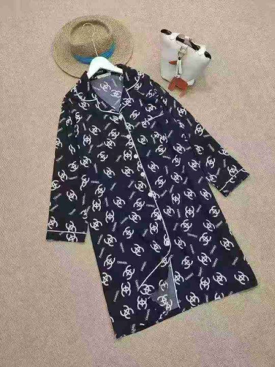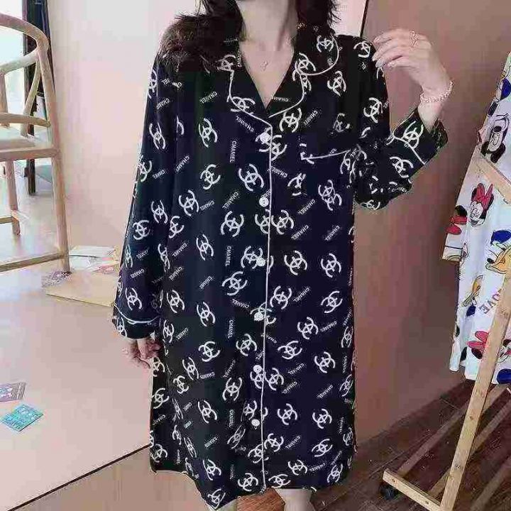 [月亮]:时尚春夏中长款垂顺家居长袖睡裙