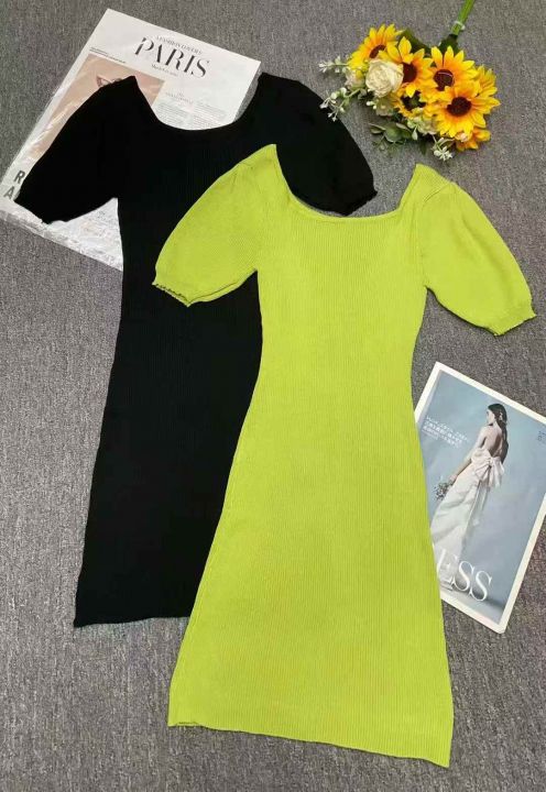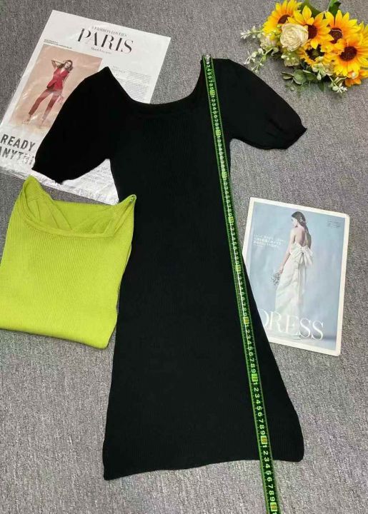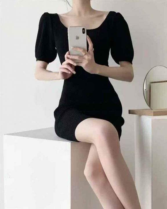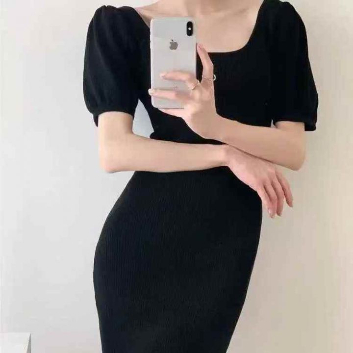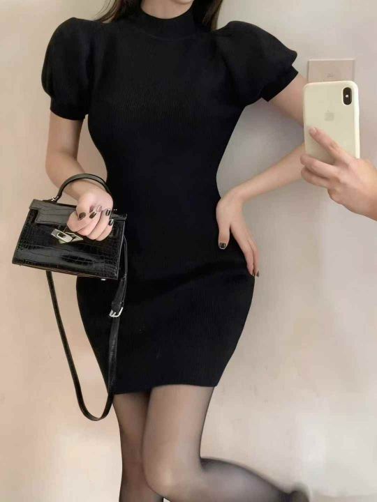 夏季新款法式减龄泡泡袖短袖弹力修身显瘦针织连衣裙,黑色多,独立包装,338件,全清6.9元超低价秒杀!。 货号:1303