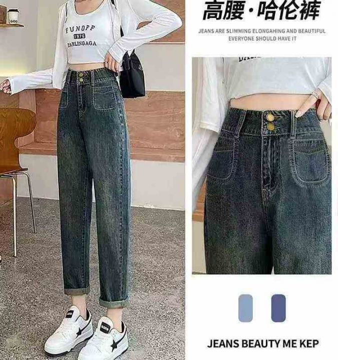 秋季新品复古蓝网红牛仔老爹哈伦裤,独立包装带吊牌,...