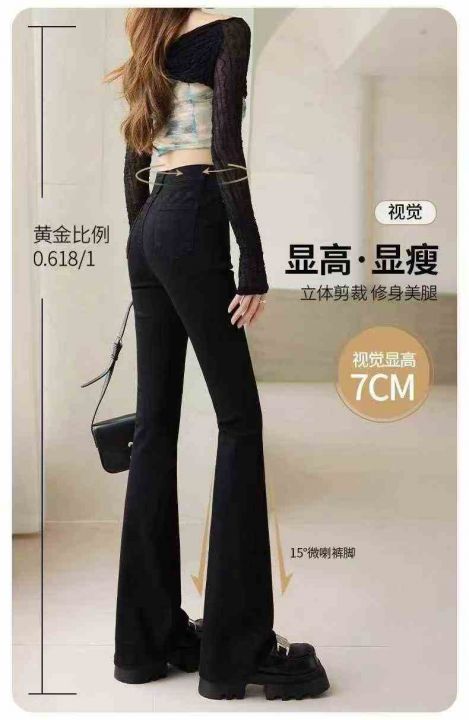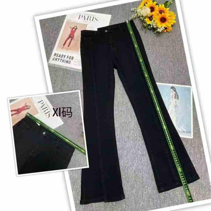 高弹力网红高腰喇叭开叉牛仔裤女,单款四色,独立包装带吊牌,码数25-32,...