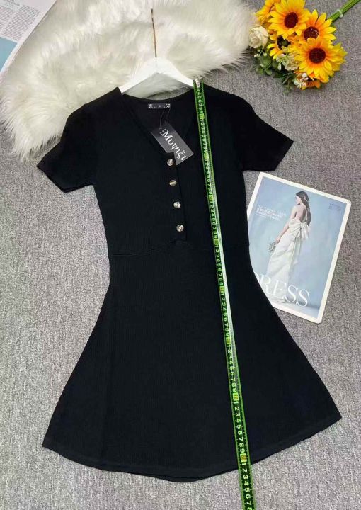品牌原单法式复古弹力修身显瘦冰丝针织衫小黑裙,独立...