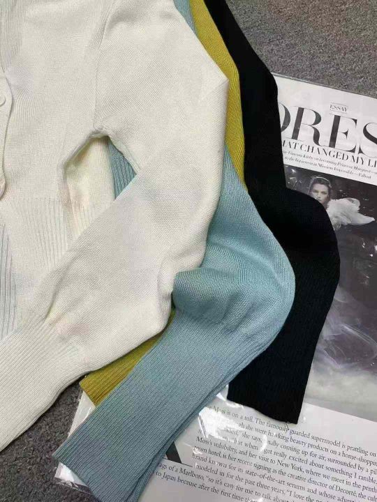 秋季新品小清新设计款短款针织毛衣开衫,独立包装,均...