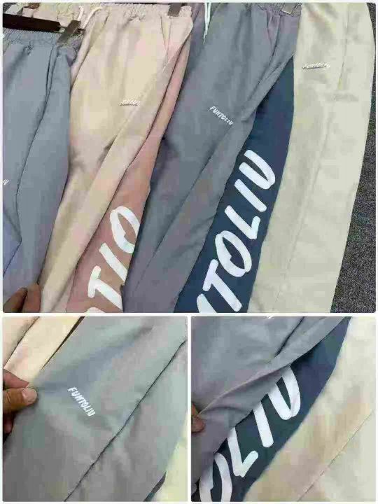 523条,港风休闲裤女2025夏季新款宽松阔腿裤薄款抽绳束脚拼接学生运动裤,独立包装,码数S-3XL,全清7.8元,分货➕0.5