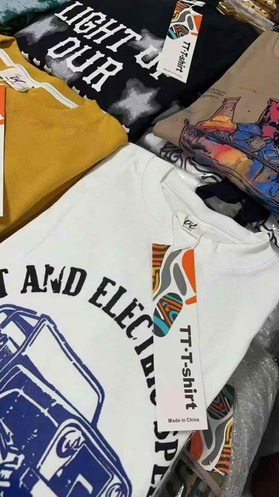 30000+欧版快时尚品牌潮牌系列高品质280-300克重磅纯棉罗拉大版露肩短袖T恤男女通款颜色花型多新货当尾货价格批发工厂直销