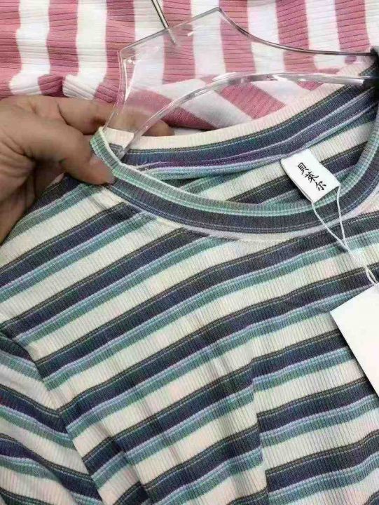☕️1200件全清11.9元,100件起12.9元,均码高弹力80-140斤,夏季新款洋气条纹短袖t恤女复古短款圆领紧身显瘦半袖上衣潮