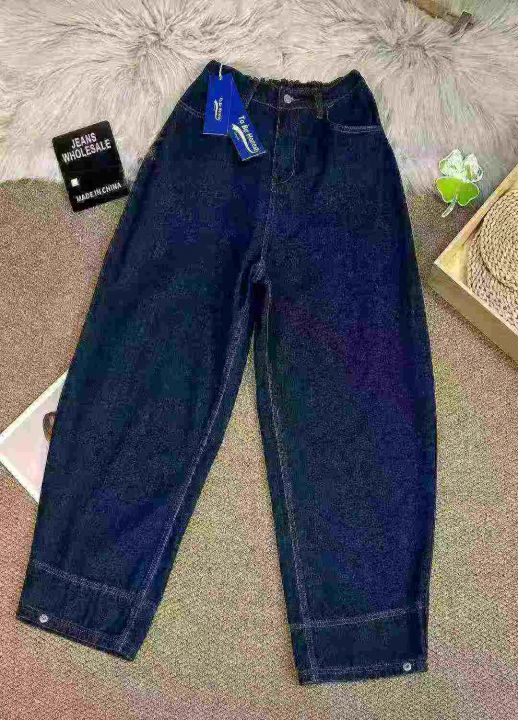 #Jeans wholesale 弯刀牛仔裤女士秋冬半松紧高腰长阔...