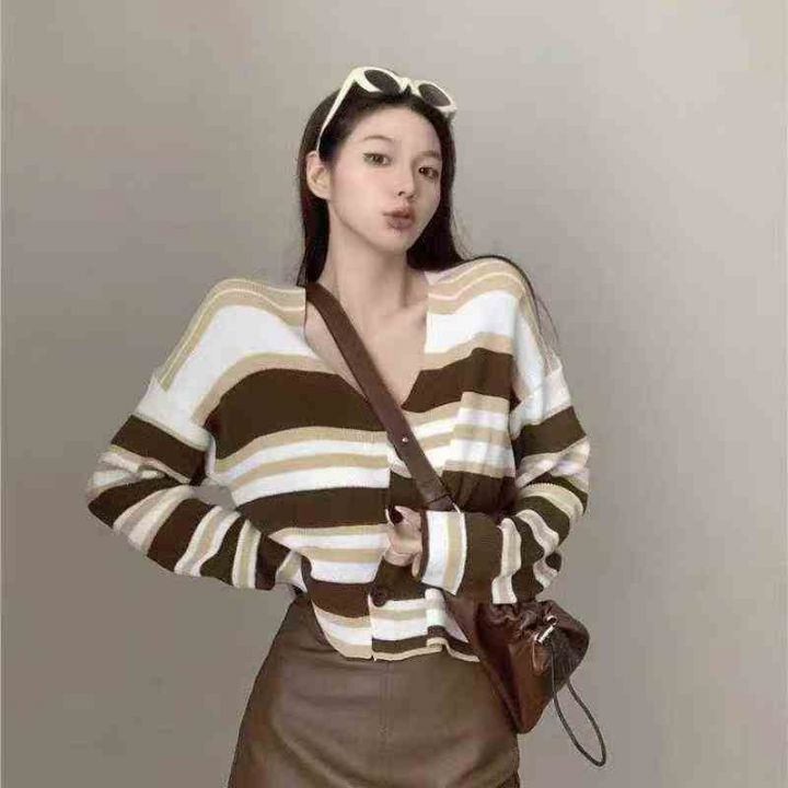 秋季新品软糯撞色条纹宽松慵懒风百搭针织毛衣开衫,独立包装,均码面料软糯...
